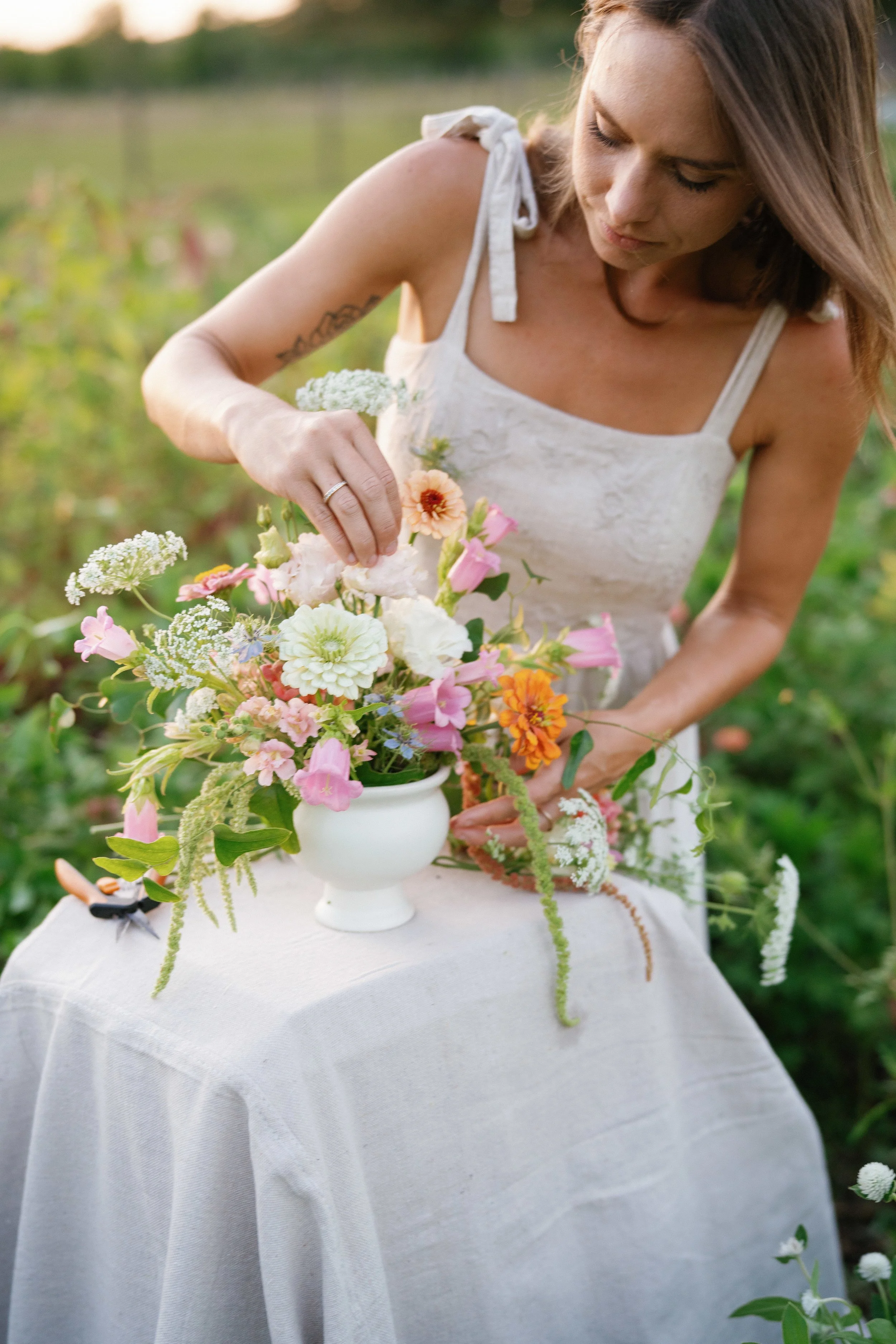 Join Mindful Blooms Farm for a fun and interactive Flower Arranging Class! Learn the art of creating beautiful floral arrangements in a relaxed and friendly environment. Whether you're a beginner or have some experience, this class is perfect for anyone who wants to enhance their floral design skills. During the class, you'll have the opportunity to work with a variety of freshly picked flowers and foliage, allowing you to experiment with different colors, textures, and styles.